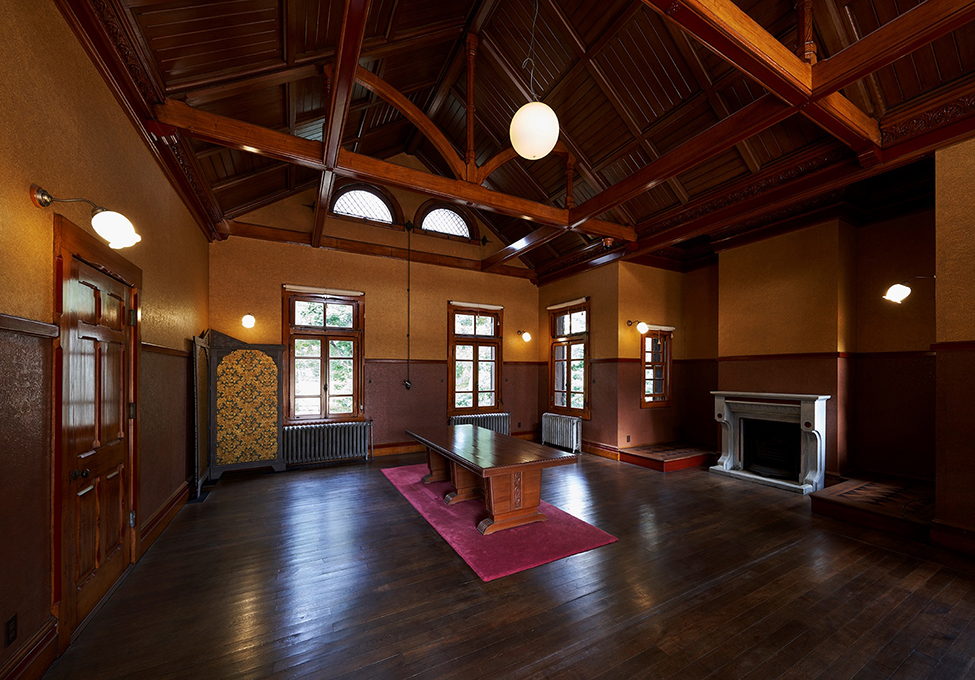旧岩崎邸庭園に佇む、日本でも珍しいシャレー風建築の撞球室(ビリヤードルーム)を特別公開。英国人建築家ジョサイア・コンドルが設計し、スイス山岳地帯の建築を思わせる木造平屋建ての空間で、壁紙に使用されている金唐革紙の技がよく分かる貴重な版木ロールを展示。また、開催期間中は、特別に洋館前の芝生に立ち入れるエリアを設け、ベランダを彩る英国ミントン社のヴィクトリアンタイルを外側から間近で見学することができます。