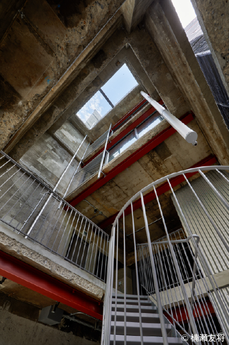 大胆な「減築」を1969年築の不適合建築に施した「岡田ビル」。床面積を減築させることで適法化と同時に採光や通風をもたらし、まちの骨格を更新する建築として生まれ変わりました。その社会性とデザイン性の高さから、2023年 グッドデザイン・ベスト100をはじめとして多数の建築賞を受賞しました。今回は屋上まで続く階段と屋上を特別公開します。神田錦町のまちづくりに取り組む安田不動産と再生建築研究所がタッグを組んだ、独創的で豊かな建築空間を体験してください。