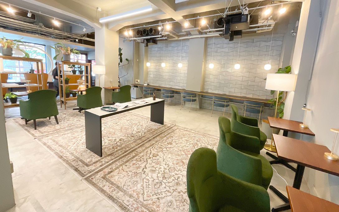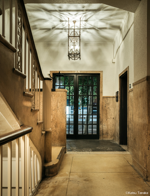 変わりゆく東京にあって、1932年の完成から約90年もの間、建築金物の製造販売を行う堀商店によって維持されてきました。スクラッチタイルを貼ったり、水平線を強調したデザインにしたりと、関東大震災後のモダンさと豊かな装飾性が同居しています。そんなビルの味わいはそのままに2021年、「堀ビル」はシェアオフィスに生まれ変わりました。会員の共用スペースである1Fのラウンジが今回、特別に公開されます。日に数回、この保存活用プロジェクトを手がけた竹中工務店のCOT-Lab 新橋代表・杉本照彦さんや、オフィスを運営するグッドルームによる上階への案内も人数限定で実施されます。