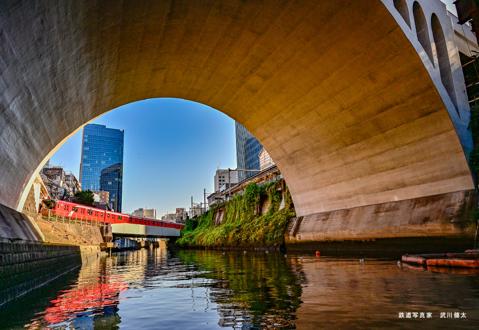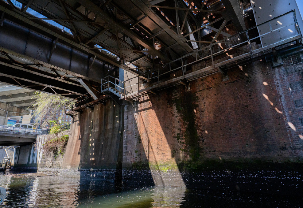 墨田川、日本橋川、神田川を船で巡り、水辺から見る建築を楽しむクルーズツアー。江戸から東京へ、水運によって発展してきた東京のまちと建築の変遷を、JR東日本社員がガイドします。かつて物流のメインとなっていた水辺に面する建築の数々は、陸地側から見るいつもの風景とは違う表情をしています。幾重もの橋、首都高橋脚、近隣の建物が交錯する一見カオスの様な景観、静水に映し出される虚像と実像のコンストラクト。都心にありながら非現実の世界に迷い込んだような特別空間を、屋根のないオープン船による圧巻の迫力で体験します。大人からお子様まで、ぜひお楽しみください。電車ファンも必見のツアーです。