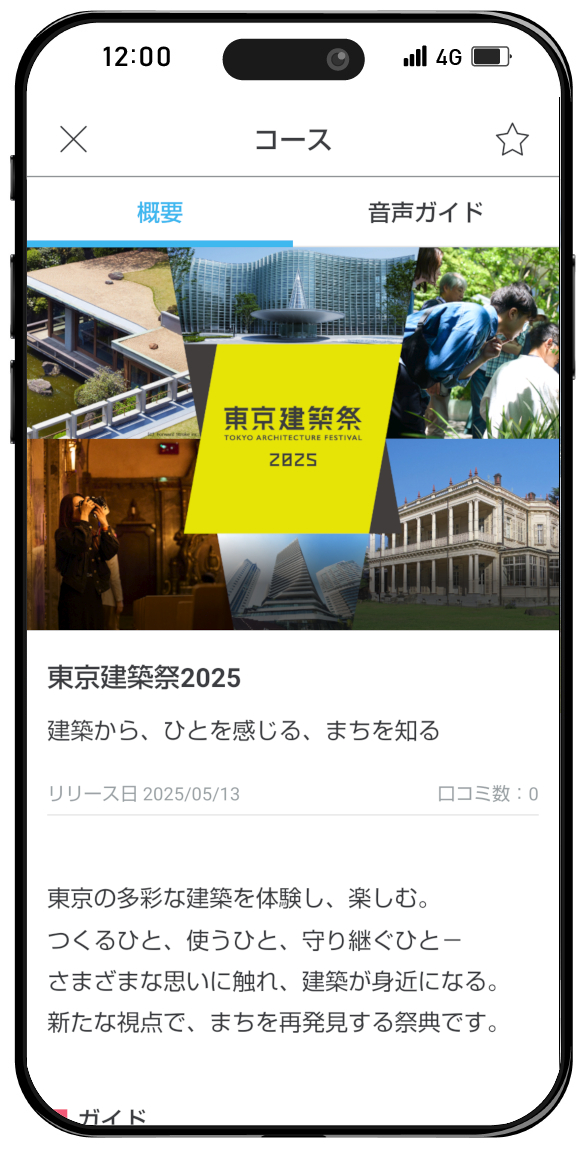 | その他 | 1.アプリまいまいポケット をダウンロード 2.「2025年東京建築祭」を「無料で入手」 あらかじめアプリをダウンロードのうえ、お楽しみください。 |
